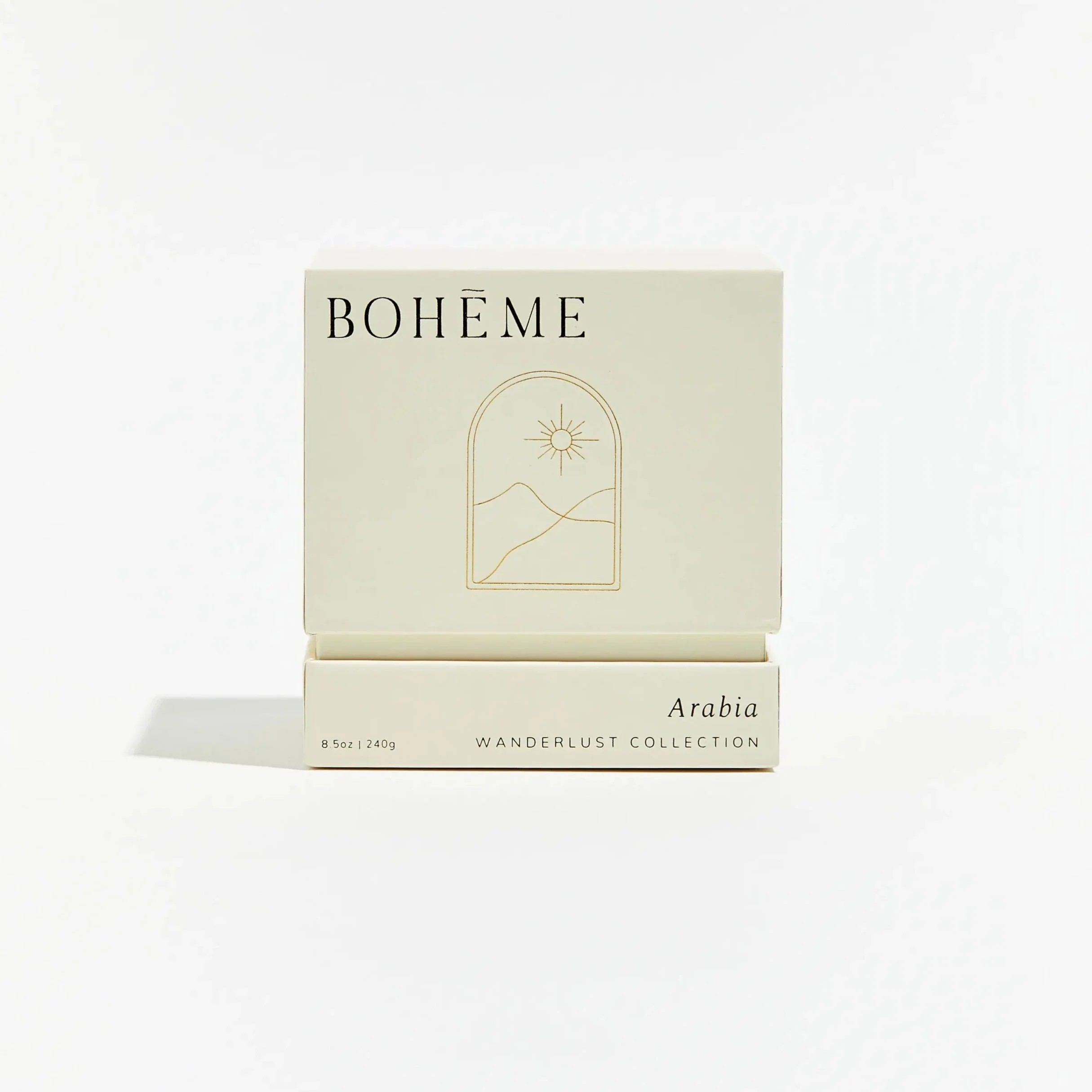 Built on tribal traditions and the untold wealth of the earth itself, the Arabian peninsula is a land perched between the ancient and the future. For the Bohéme Woman, it’s both playground and sanctuary, the only place on earth where the day may go from the mosque to the yacht, from the museum to the marketplace. She embraces the unique and mysterious luxury of the land evoked by the precious oud chips sold at the souk, with their enchantingly deep and smoky richness, entwined with the fruits and spices of traders whose wisdom dates back countless generations. Warmed in the amber glow of the desert sun, she reflects on another perfect day in the Gulf. 100% all-natural vegan wax, 50-hour burn time, 8.5oz / 240g