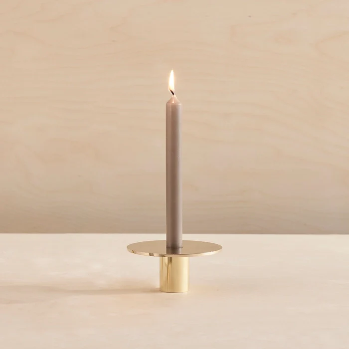 The brass candle holders are a striking minimalist design crafted from solid brass giving the product weight and substance. The wide disc frames the candle, while creating an illusion of floating above a table surface.