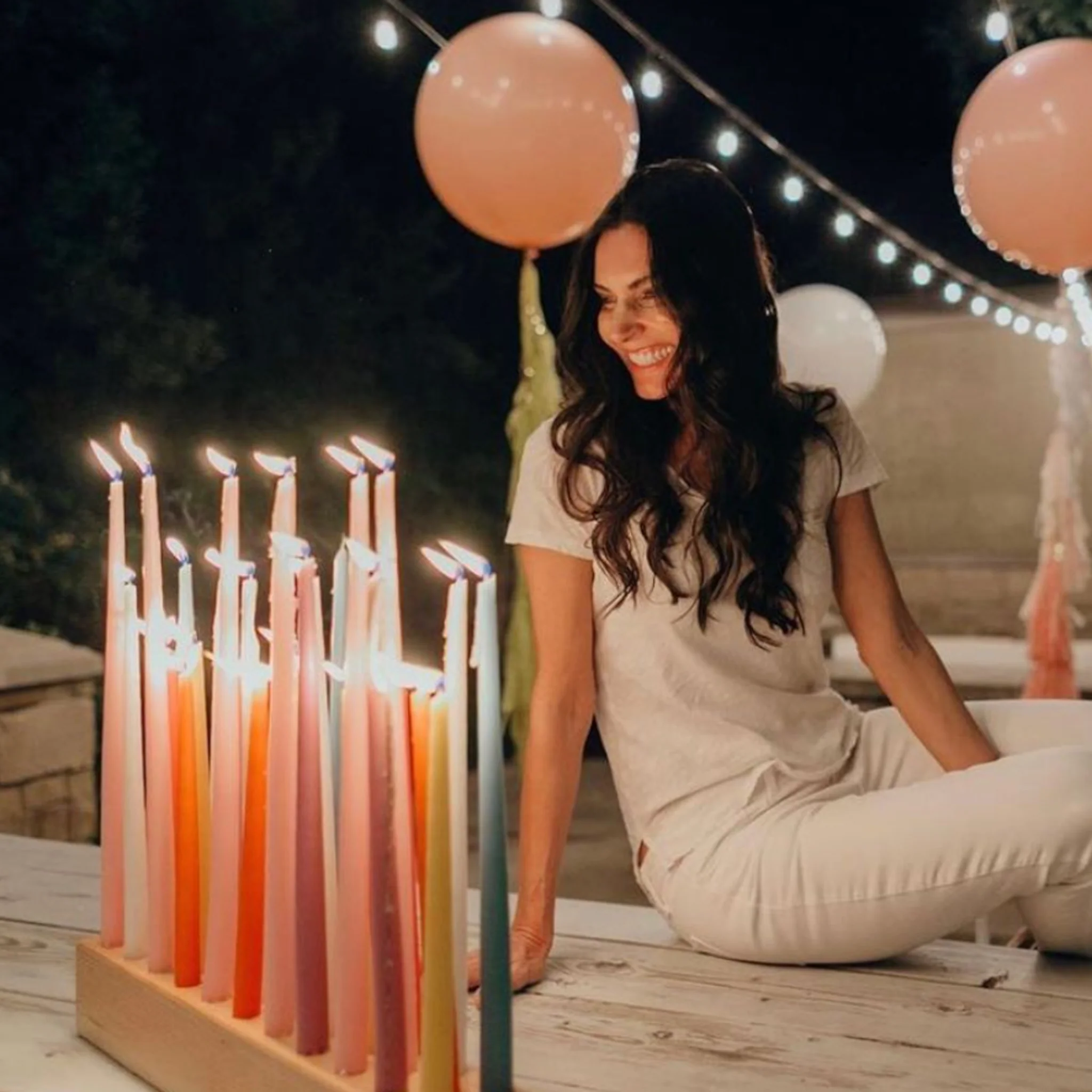 3ft x 3.5in x 3.5in base while slots for 50 taper candles.