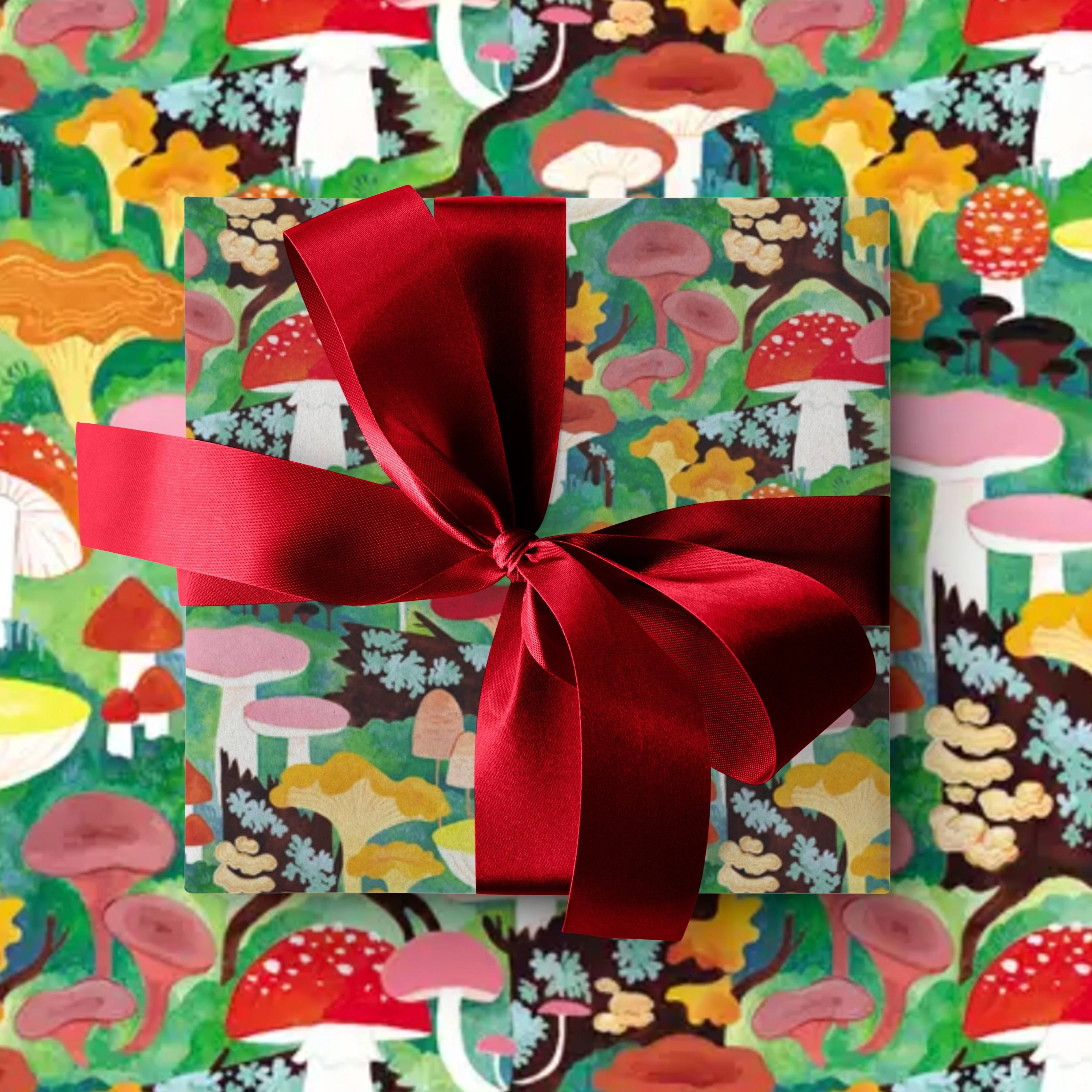 Our woodland mushroom wrapping paper is perfect for all of those magical forest lovers. Hand illustrated by our favorite Kelsey Garrity Riley. Made in Los Angeles, California, USA, on recycled paper. Works well with most colorful ribbon. Comes with three sheets.